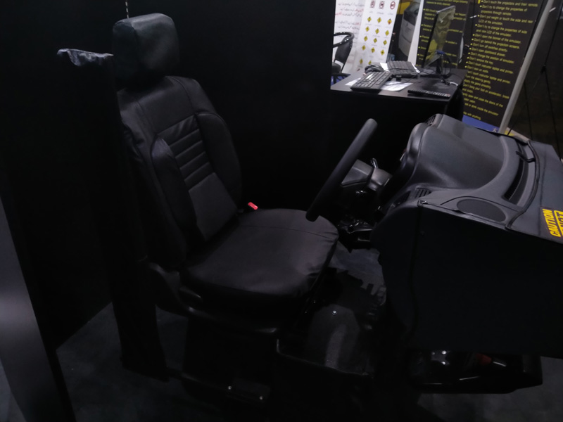 When training a driver in a simulated environment, we believe that it is of great importance that the environment and controls provided for training function exactly as per specification of the actual equipment. After extensive research and various attempts to achieve that goal we finally came up with the design of our advance driving simulator / trainer. Our advance version of the driving simulator uses actual vehicle cabin as trainee station with following design features